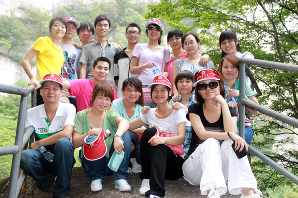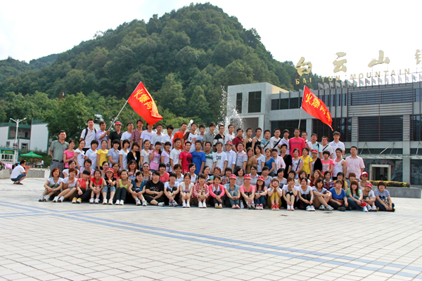 火爆網(wǎng)絡(luò)全體員工在白云山山腳下合影留念