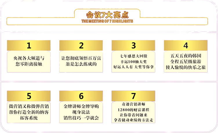 只要來參會即可獲得價值12800的自動提款機的課程,帶著問題來,拿著撬動業(yè)績的方案走!今天你不用投資120萬請葉茂中做策劃案,也不用60萬,也不用30萬,更不用10萬,只需要來參會,就可和趙海燕老師共同學(xué)習(xí)現(xiàn)場量身定做你的品牌的專屬業(yè)績增長方案!把策劃結(jié)果拿回家!本次課程只為有夢想的企業(yè)家開放,只為夢想前進!撬動業(yè)績的扛鼎模式,錯過了就是錯過成為下一個百萬富翁的機會,你還在猶豫什么?